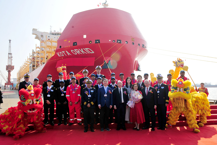 11月4日上午,我集團新?lián)P子造船為新加坡太平船務(PIL)建造的第四艘8200TEU薄膜型LNG雙燃料集裝箱船“KOTAORKID”輪解纜離開船…